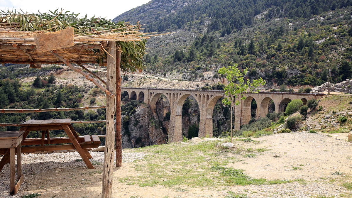 Nefis bir yemek yerken birden tren sesini duyacaksınız ve oturduğunuz yerden, daracık bir başka köprünün daha  olduğunu göreceksiniz. İki tünel arasındaki bu köprü, restoranın adeta içinden geçiyor. Şaşırmayın, tren yolu size o kadar yakın. Dağın içerisinden bir tren çıkıyor ve gözden yine kayboluyor.