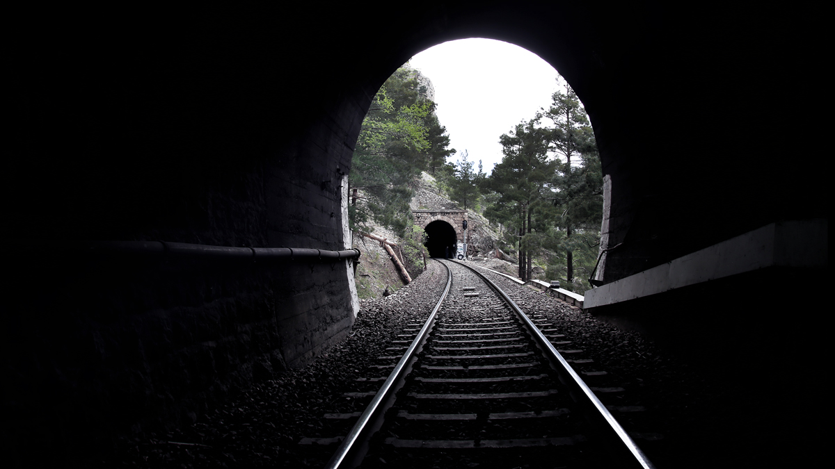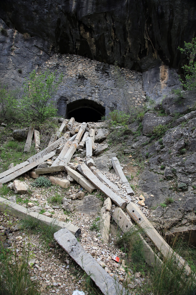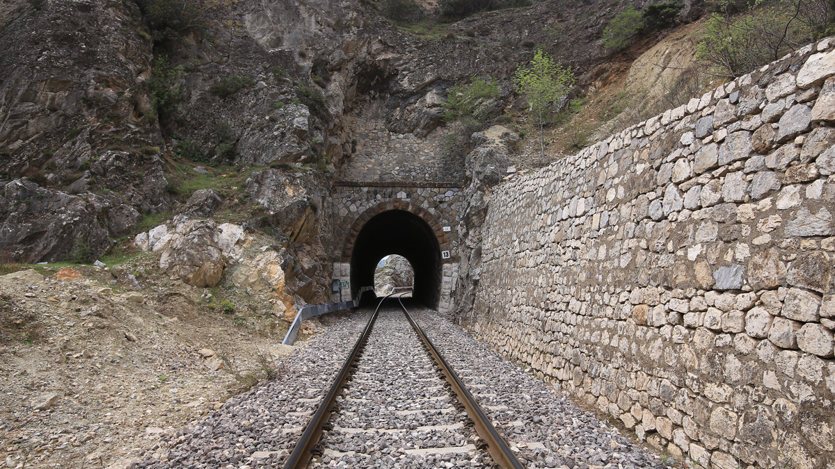 Üstteki fotoğraftaki gibi dağın içerisine giren menfezler var. Rayların üzerinde yürüdüm, karanlık olduğu için iyi fotoğraf yoktu.