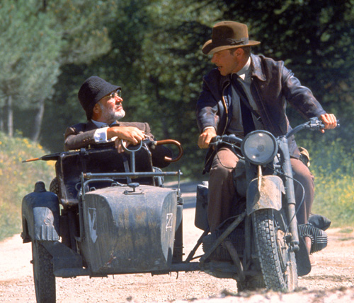 Orjinali yukarıdaki fotoğraftaki gibi. Fakat benimkisi de hiç yabana atılır bir seyahat değildi. Zaman zaman stop eden en az 30 yıllık bir Rus motorsikletinin sepetinde, bazen tek tekerlek üzerinde uçurumu yalarcasına gittik. Valla iyi cesaretmiş. Canlandırma fotoğraf, yolun düz olduğu yerde çekildi, haliyle yanımdaki tripod yardımıyla. Yanlız şöförüm benden daha çılgınmış. Aynı İndiana Jones’ın babası gibi… (Sean Connery – İlk Bond) E yani, hayat ne kadar ilginç değil mi?
